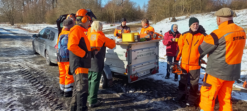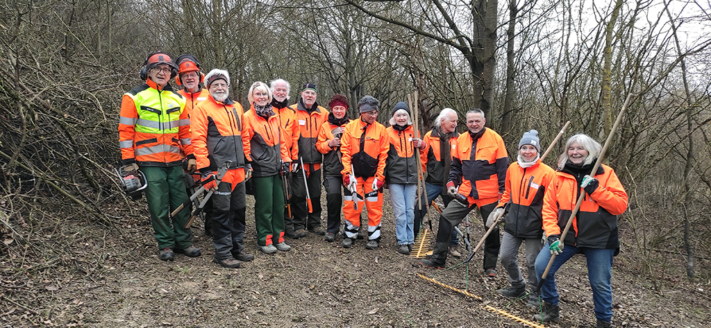 Nach einem langen Winter meldet sich nun der Frühling heftig an: Bei Temperaturen über 16 Grad und Sonnenschein beschließen wir heute die Wintersaison 2025/26 mit unserem 14. Pflegeeinsatz auf dem Kerstlingeröder Feld. Mit 25 (!) Mitgliedern beenden wir heute unsere Arbeiten zur Wiederherstellung einer Kalk- Magerrasenfläche auf einem Hügel an der Ostseite des Sauberges.